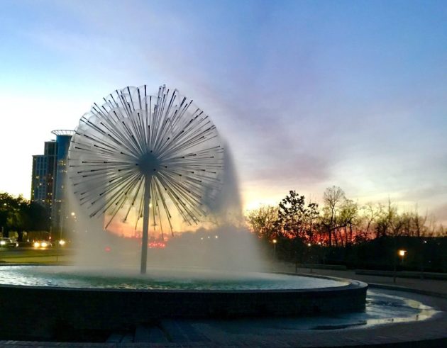 At the center of this grove is the Gus S. Wortham Memorial Fountain, affectionately known as the “Dandelion.” The fountain’s brass starburst of pipes sprays joggers, cyclists, and walkers, offering a cool respite from the heat. With shaded overlooks and beautiful plantings, the area is a favorite meeting spot.